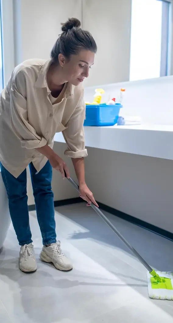 Sweeping, vacuuming, and mopping floors.